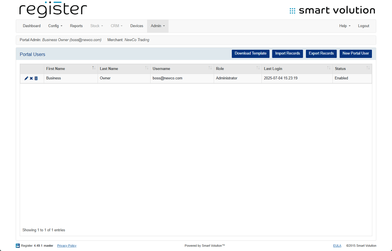 On the Portal Users screen, you can: