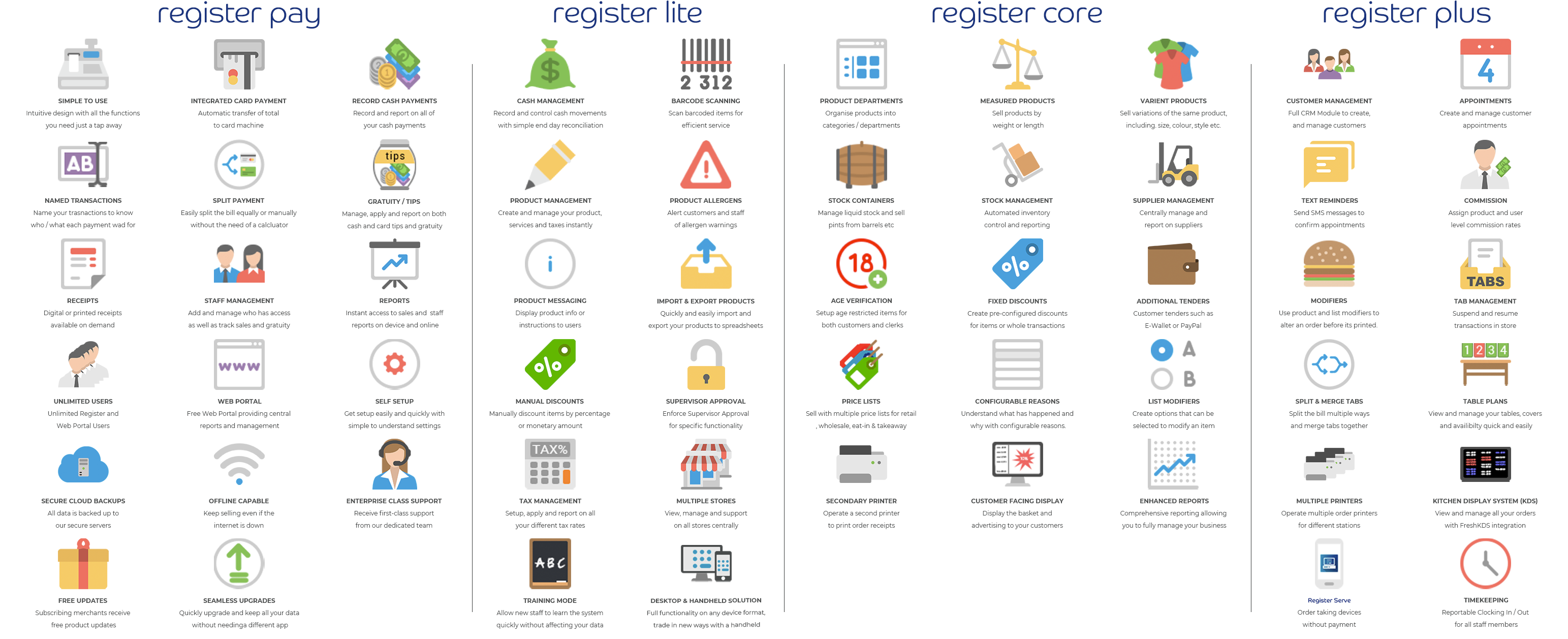 You can easily upgrade your system to a full EPOS (Electronic Point of Sale) system! There are different licence tiers depending on what features you need.
