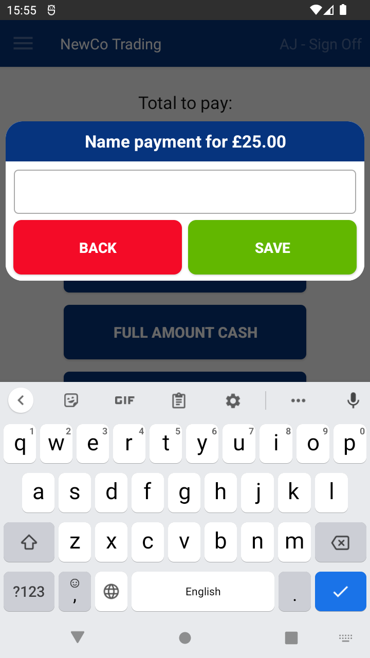You can choose to add a name to any transaction, which makes it easier to identify specific sales or refunds later. This is especially useful for tracking by customer name, invoice number, job type, or any other reference.
