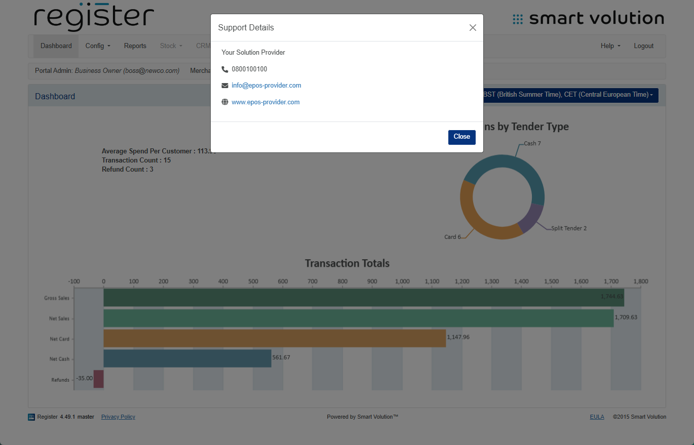 If you have any questions or need support, your best contact is your Solution Provider. You can find their contact details both on your device and in the Web Portal.